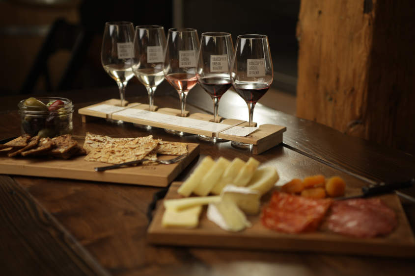 In keeping with its non-pretentious surroundings, the charcuterie board at The Belgard Kitchen is simply referred to as a “sausage board.” The plate includes a couple of delicious grilled sausages, plus a selection of other meats, cheese, pickles, and their mushroom and bacon paté. The restaurant also offers a massive range of B.C. wines on tap, as well as an on-site brewery.